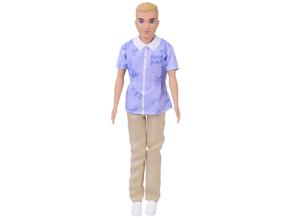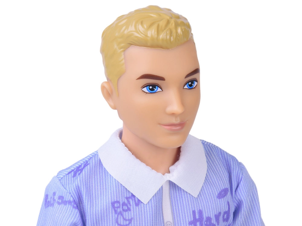 Fein modellierte blonde Haare, hochwertiger Druck auf dem Hemd und sorgfältige Nähte an der Hose wirken authentisch und halten häufigem Spielen stand.