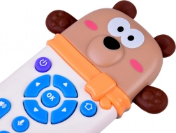 Diese interaktive bärenförmige Fernbedienung sieht wie eine echte Fernbedienung aus, verfügt jedoch zusätzlich über weiche gummierte Ohren und Pfoten als Beißring. Bunte, übersichtliche Tasten laden zum Entdecken ein und die sichere Konstruktion ist für die Kleinsten geeignet.