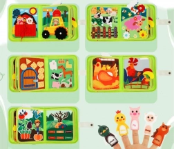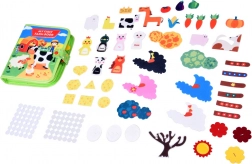 Kinder lernen Nutztiere, Farben, Formen und Feldfrüchte kennen. Durch das Umsetzen der Teile gestalten sie eigene Szenen und erweitern Wortschatz und Fantasie.