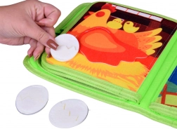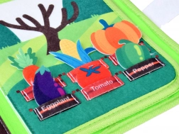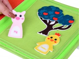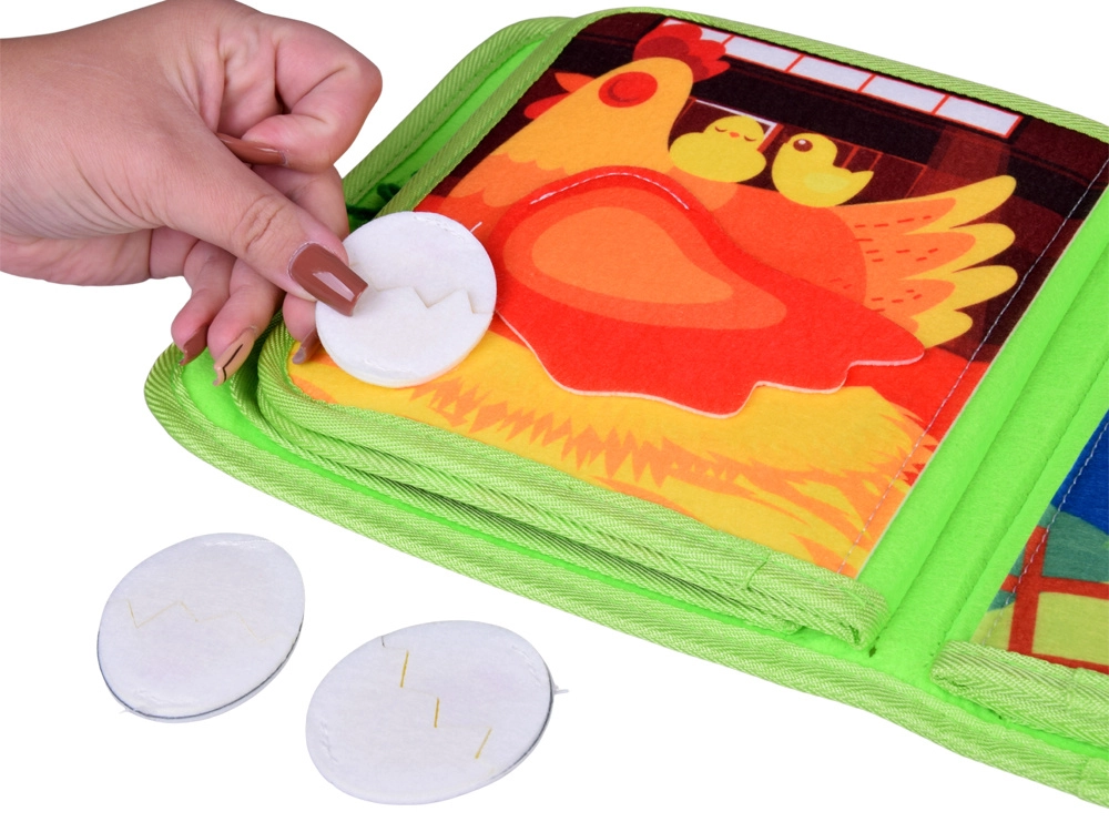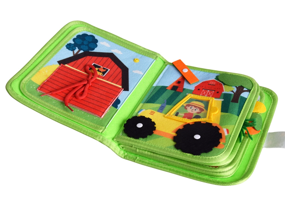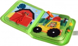 Dieses textile Sinnesbuch mit Bauernhof-Thema bietet Kindern stundenlange kreative Unterhaltung. Auf jeder Seite warten Tiere, Gemüse, Traktor und Scheune, die sich dank Klettverschluss versetzen und kombinieren lassen. Kinder können Fenster öffnen, die Traktorräder drehen oder eine Schnürung binden und entdecken, was es auf dem Hof zu sehen gibt.