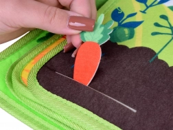 Fensterchen öffnen, Karotten aus dem „Beet“ ziehen, Klett-Kreise anbringen und Schnüren in der Scheune – alles ausgelegt zum Training der Fingerfertigkeit und Koordination.
