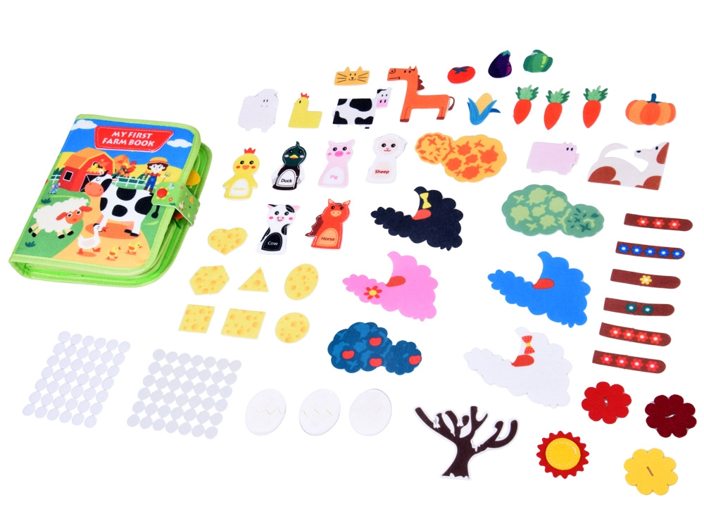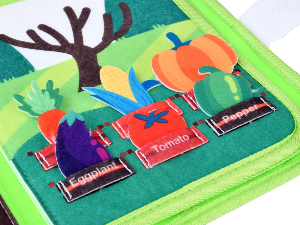 Das Buch besteht aus weichem Filz, angenehm zu berühren, alle Kanten sind glatt und sicher für kleine Hände. Es fördert Feinmotorik, sensorische Wahrnehmung, Wortschatz und selbstständiges Spielen. Dank der kompakten Maße ist es ein toller Begleiter zu Hause und auf Reisen.