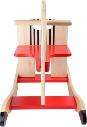 Dieses Holz-Schaukelpferd mit verspielten Sternmotiven ist eine hervorragende Wahl für die ersten Schaukel-Erlebnisse. Die stabile Holzkonstruktion, der bequeme breite Sitz und die praktischen Fußstützen gewährleisten sicheres Aufsteigen und Schaukeln. Zwei Holzgriffe am Pferdekopf ermöglichen Kindern einen festen Halt während der Fahrt.