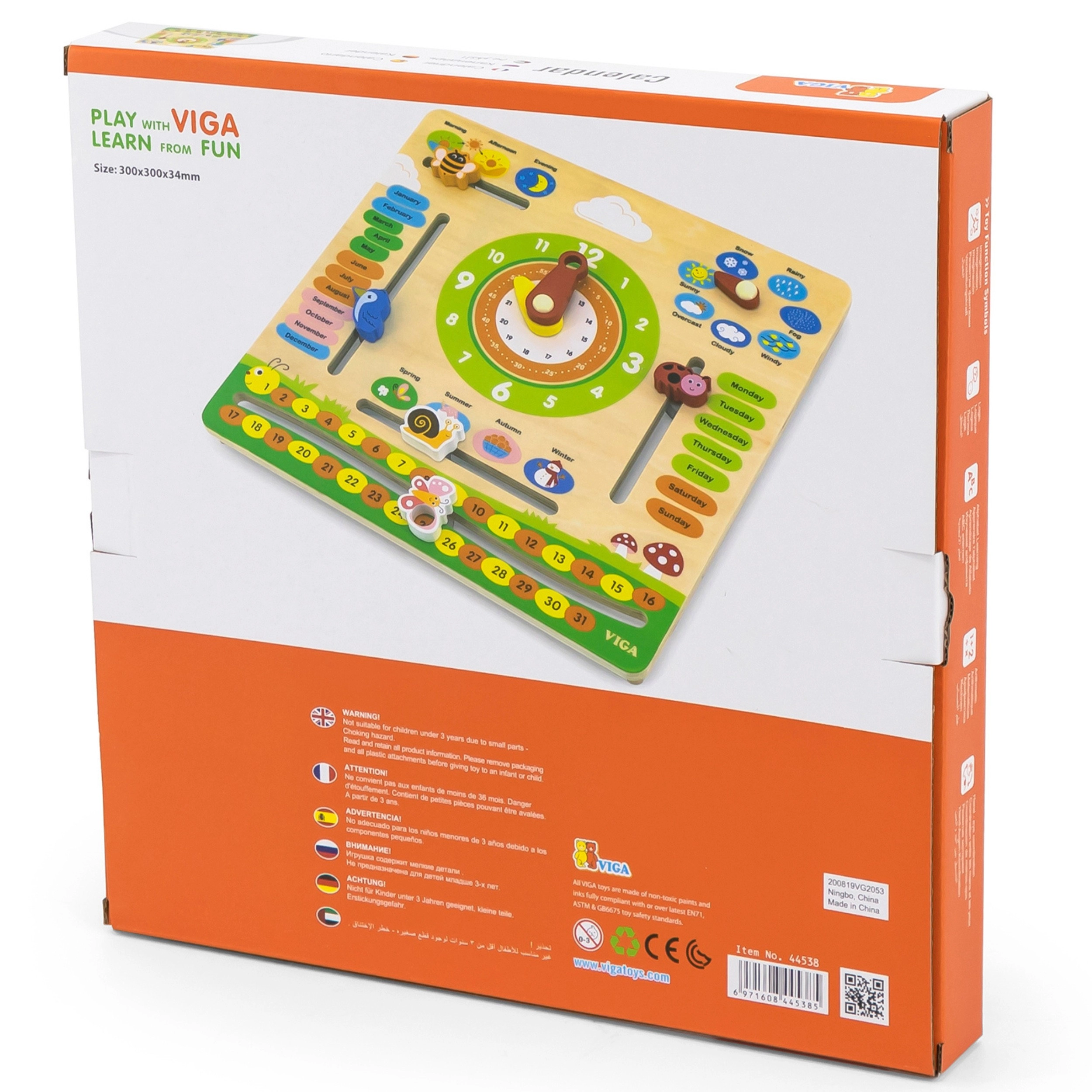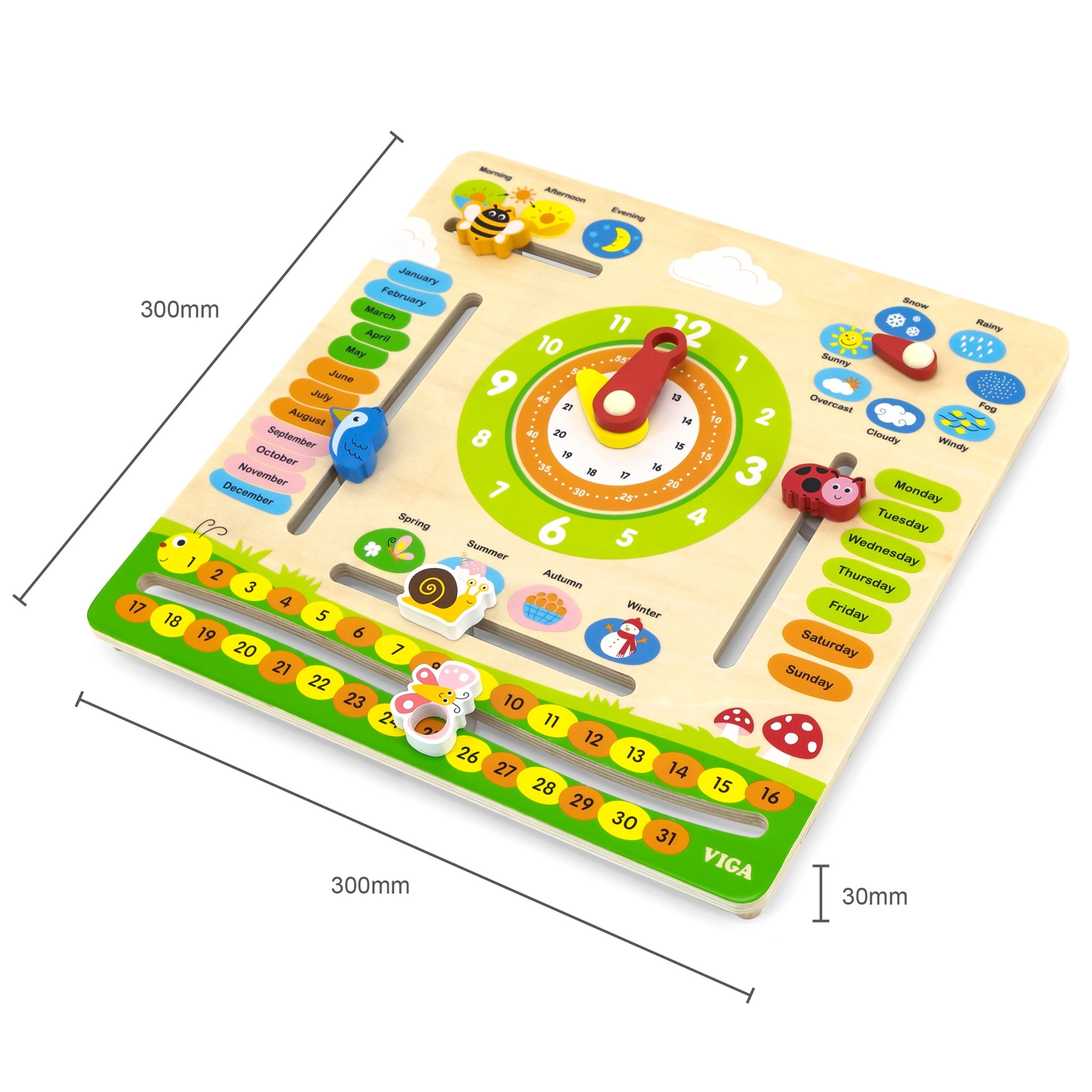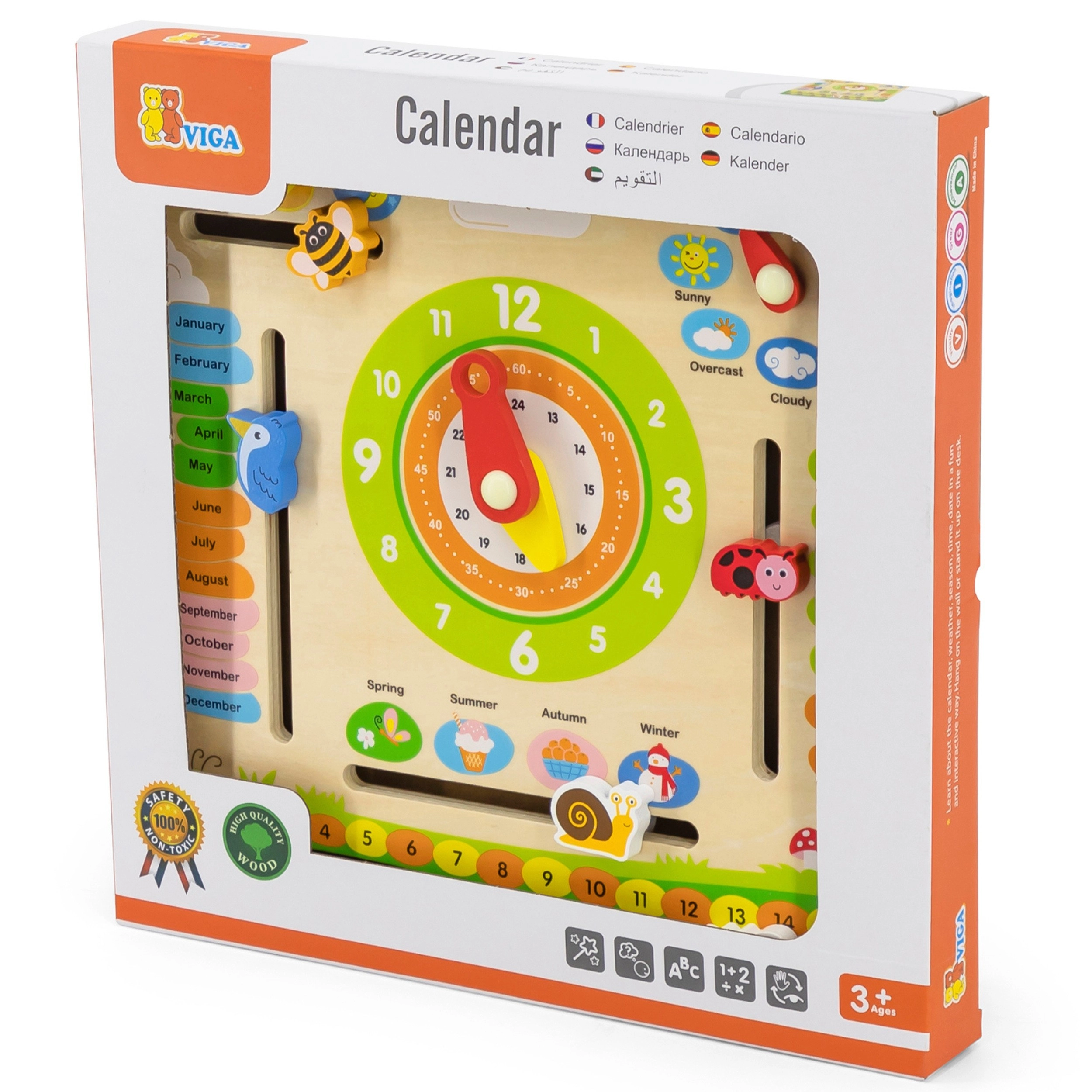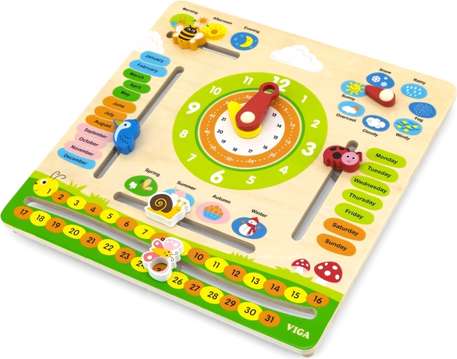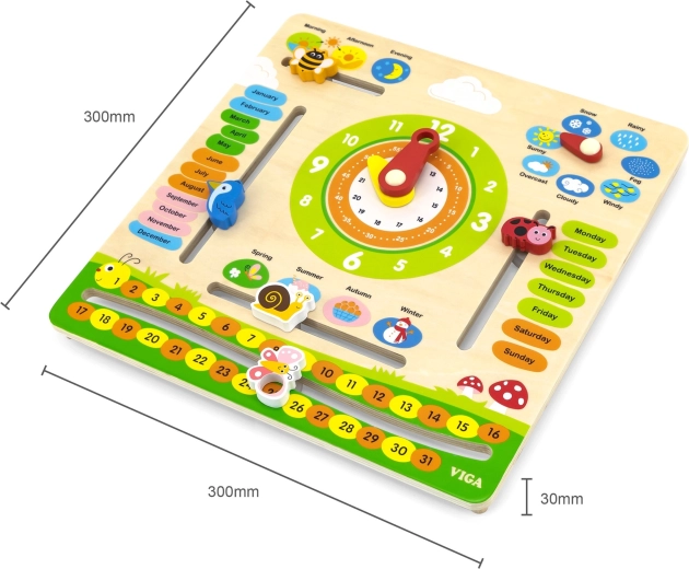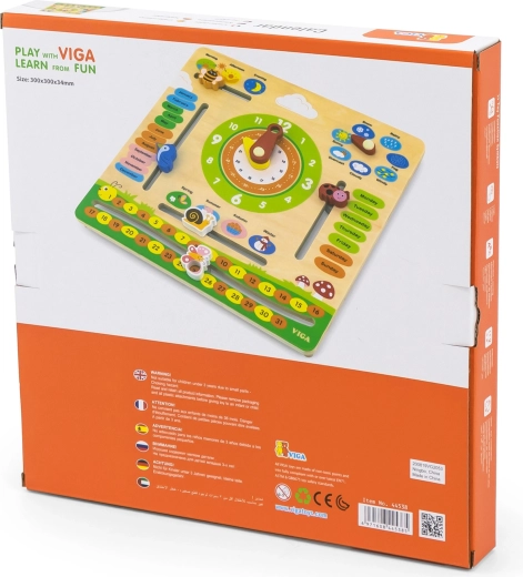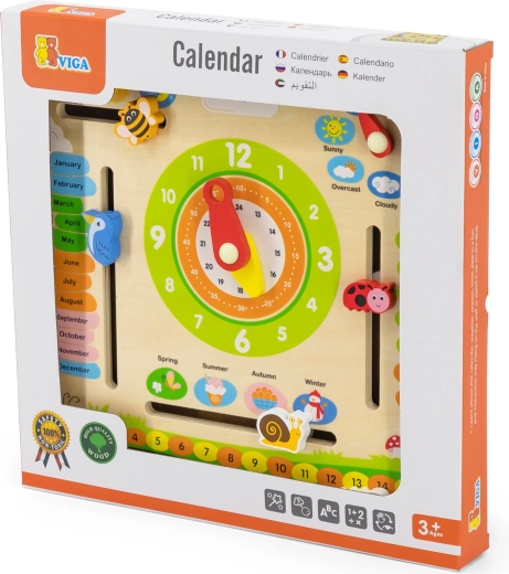 Der VIGA Bildungs-Kalender ist ein ideales Hilfsmittel für Kinder, um über Zeit, Wetterwechsel und Jahreszeiten zu lernen. Dank der farbenfrohen und beweglichen Elemente hilft er, das Konzept der Zeit täglich zu verstehen.