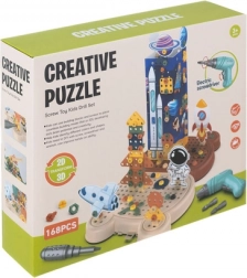 Dieses kreative 3D-Bauset macht aus Spielen Lernen. Dank des elektrischen Schraubendrehers befestigen Kinder farbige Teile leicht auf der perforierten Platte und bauen 2D- und 3D-Weltraummodelle – von Raketen bis zu Planeten. Der Bärenkoffer dient als stabile Basis und als praktische Aufbewahrung aller Komponenten.
