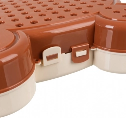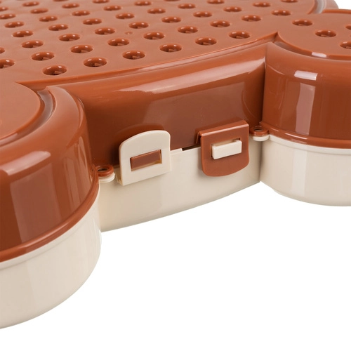 Die niedliche Box dient als Montageplatte und als Aufbewahrung für alle Komponenten. Einfach zu tragen dank Trageriemen und sichere Verschlüsse für festen Halt.