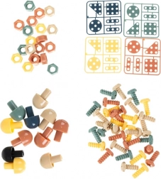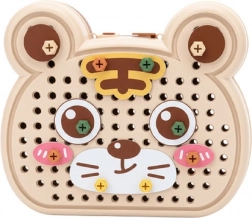 Kinder können Bauteile mühelos ein- und ausschrauben. Der ergonomische Griff und austauschbare Bits fördern die Feinmotorik und Selbstständigkeit beim Gestalten.