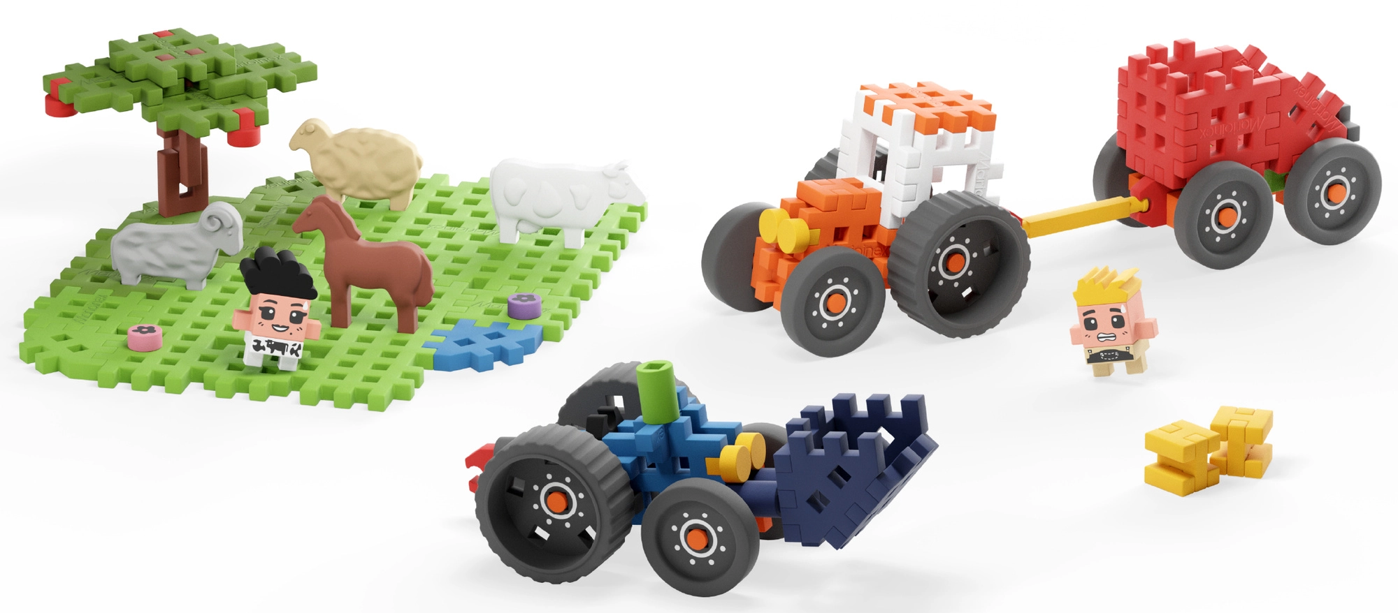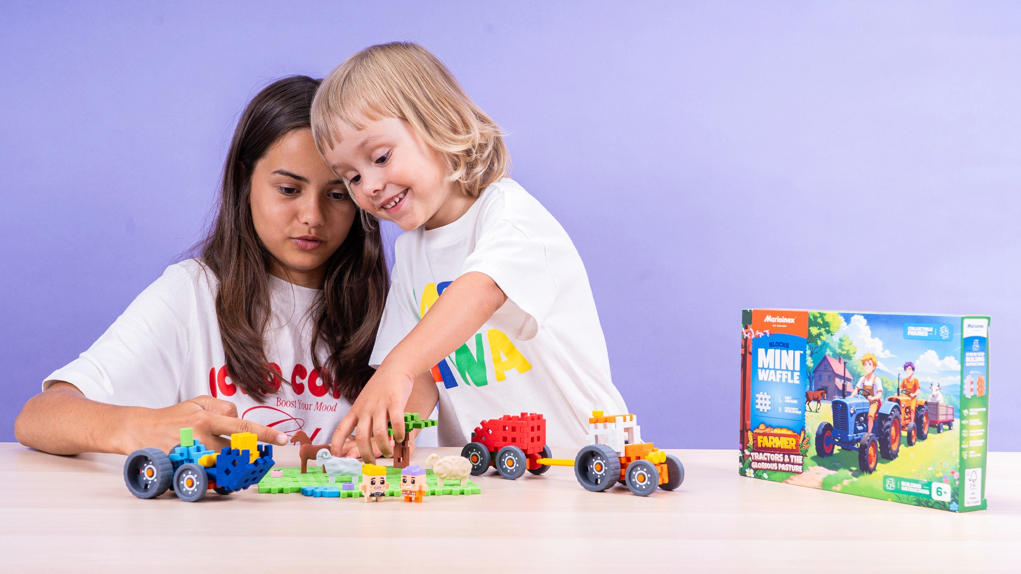 Das Set Marioinex Mini Waffle Farmer – Traktoren und Wiese ist ideal für kleine Konstrukteure und Liebhaber des Landlebens. Aus dem Inhalt bauen Sie 2 Fahrzeuge, einen Baum, einen Teil der Weide und es gibt natürlich auch Figuren von Personen und Tieren. Die Teile lassen sich leicht verbinden, fühlen sich angenehm an und werden mit Blick auf Nachhaltigkeit hergestellt.