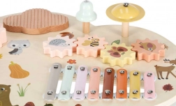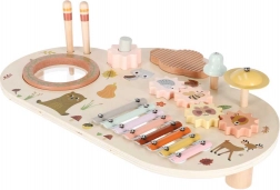 Der Tisch bietet eine übersichtliche Anordnung der Elemente und eine sichere Ausführung aus Naturholz. Sanfte Pastellfarben und Tierillustrationen regen die Fantasie an, während die robuste Konstruktion Stabilität beim Spielen gewährleistet.
