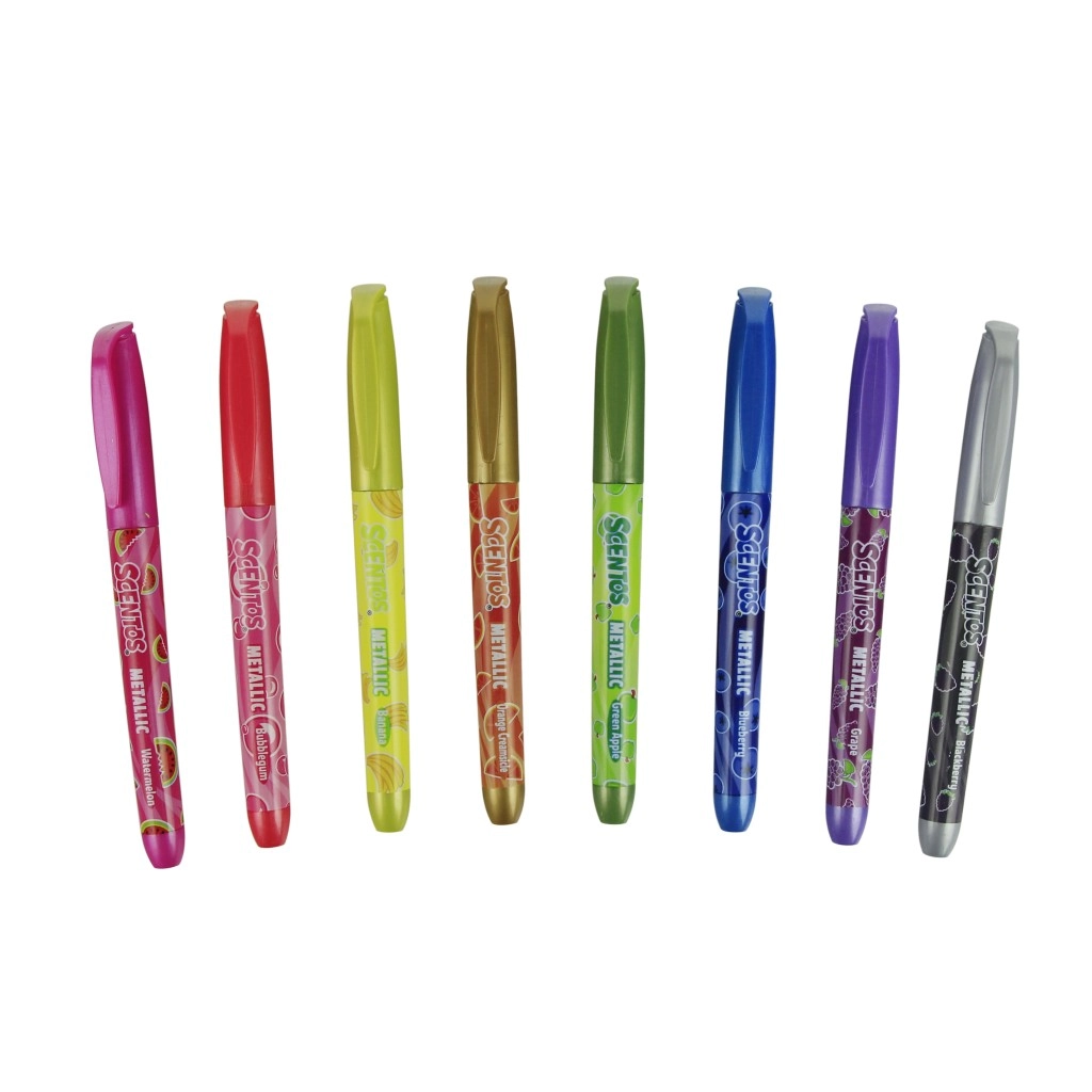 Veredeln Sie Ihre Projekte mit den metallischen SCENTOS-Markern, die intensive Farben, funkelnden Glanz und angenehme Fruchtdüfte vereinen. Jeder Marker hat einen farbigen Schaft passend zum Farbton, sodass Sie sofort zur richtigen Farbe greifen. Das metallische Pigment kommt besonders auf dunklen Papieren zur Geltung und verleiht Ihren Werken einen eleganten Effekt.