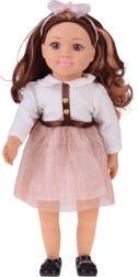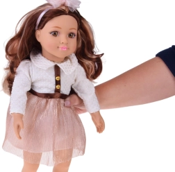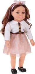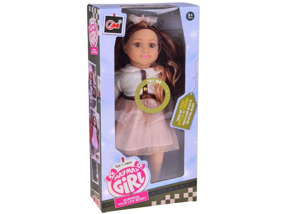 Die bezaubernde MAY MAY GIRL-Puppe überzeugt durch die Kombination aus realistischen Details und hochwertiger Verarbeitung. Das weiße strukturierte Shirt mit goldenen Knöpfen, der glitzernde rosa Rock mit Gürtel und der Haarreif mit Schleife bilden ein elegantes Mode-Set, das Fantasie und stilvolles Umkleiden anregt.