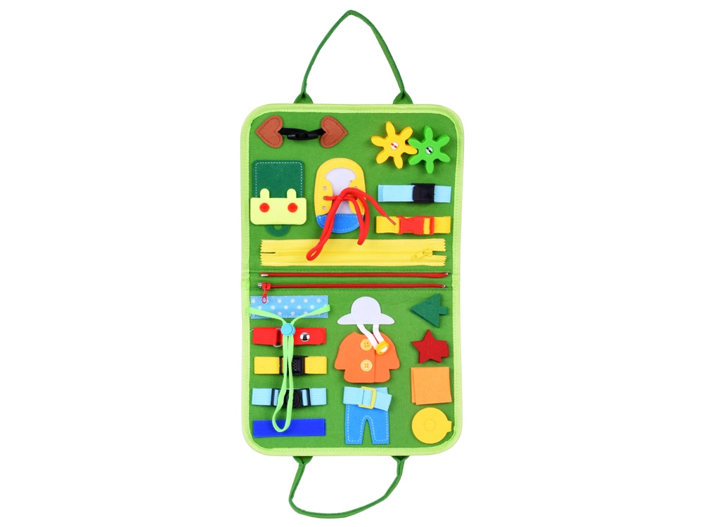 Dieses kreative Buch fördert die Fähigkeiten von Kindern durch sinnvolles Spiel. Im Inneren finden Sie herausnehmbare weiche Seiten mit Reißverschlüssen, Schnallen, Knöpfen, Schnürsenkeln, Klett-Formen sowie edukativen Elementen wie einer Uhr mit drehbaren Zeigern, Wochentagen, Wetter und Kalender. Kinder trainieren die Auge-Hand-Koordination und das logische Denken.