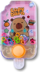 Fröhliche Grafiken mit einer Wasserschweinen-Kapybara und ein transparentes Gehäuse laden zum Spielen ein und machen das Spielzeug zu einem hübschen kleinen Geschenk.