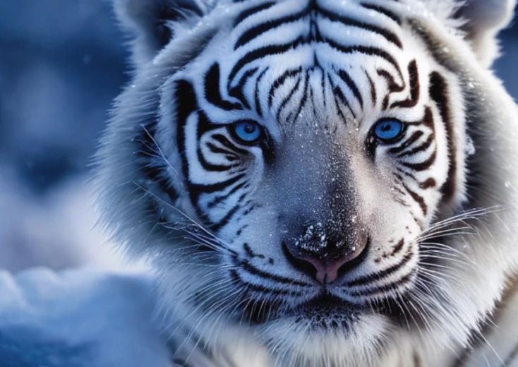 Ein realistisches Motiv mit markanten blauen Augen und kontrastreichen Streifen sorgt nach dem Fertigstellen für einen starken visuellen Effekt.