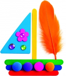 Perlen, Pompons, Pfeifenreiniger, Schaumstoffformen und Federn ermöglichen es Kindern, Bilder, Figuren, Tiere und Dekorationen genau nach ihren Vorstellungen zu gestalten.
