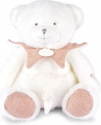 Das Design wird durch eine feine Doudou-Stickerei und satinierte Bändchen mit liebevollen französischen Botschaften veredelt, die dem Set einen eleganten und liebevollen Charakter verleihen. Der Bär hat ein rosa Herzchen auf der Pfote, einen Kragen am Hals und superweiche Pfötchen – ein tolles Geschenk für Neugeborene.
