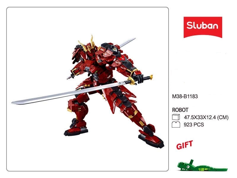 Das Sluban Roboter-Samurai Bauset verbindet die Stärke eines modernen Mechas mit der Tradition der japanischen Samurai. Dank reicher Details, der markanten roten Farbgebung und goldenen Elementen wirkt das Modell sowohl im Regal als auch beim Spielen imposant. Bewegliche Gelenke ermöglichen dynamische Kampfposen, und das Katana-Duo unterstreicht den authentischen Samurai-Stil.