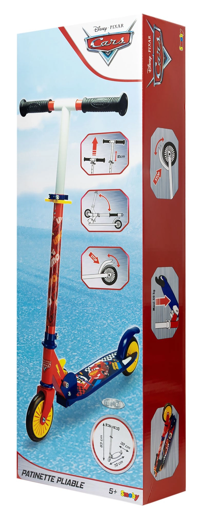 Der stylische Roller mit dem beliebten Helden Lightning McQueen aus dem Film Cars bietet jede Menge Spaß und fördert das Gleichgewicht. Dank des leichten Aluminiumrahmens und der klappbaren Konstruktion lässt er sich leicht tragen und verstauen. Die verstellbare Lenkhöhe sorgt für eine bequeme Anpassung an die Größe des Kindes, während die rutschfeste Trittfläche und die Fußbremse für eine sichere Fahrt sorgen.