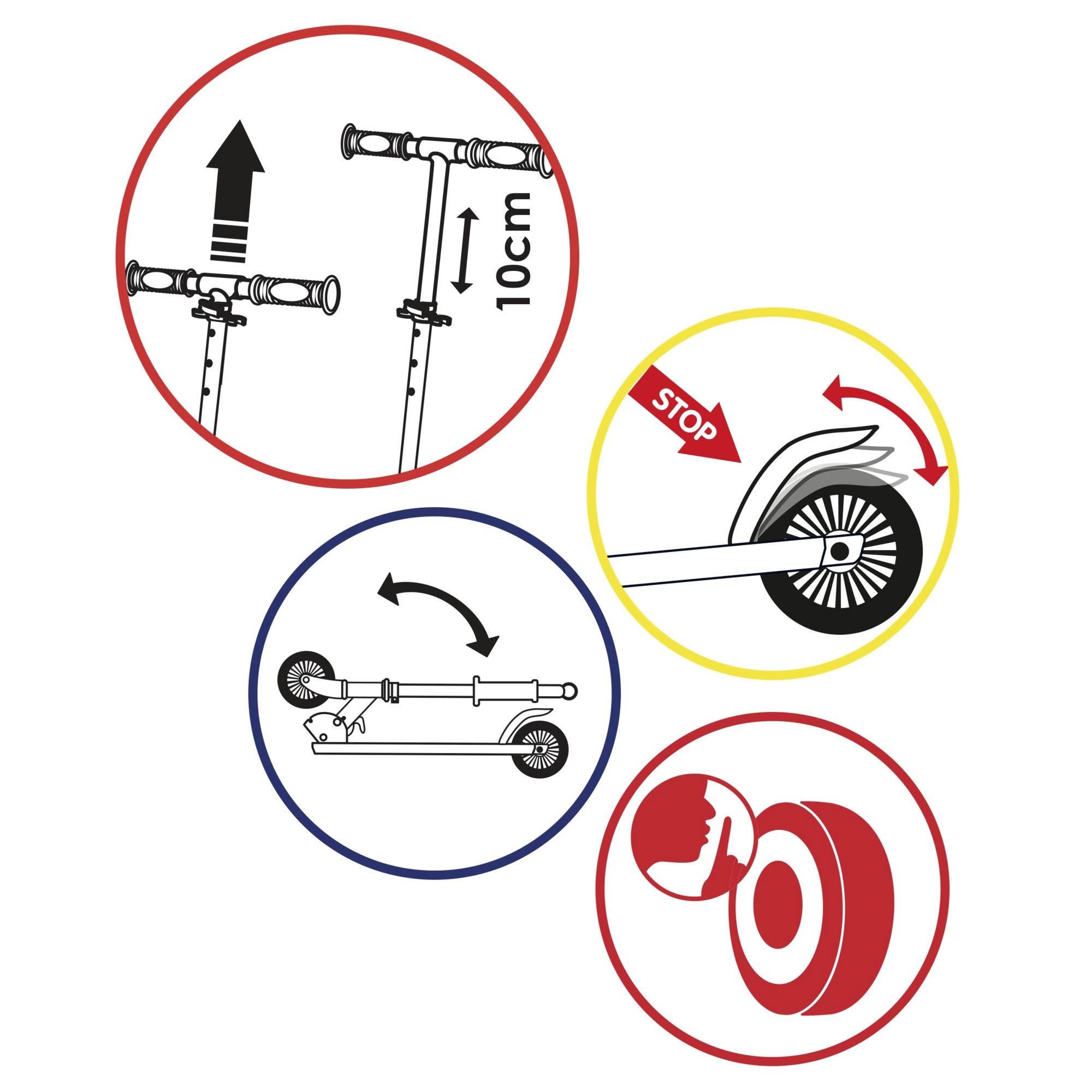 Das universelle Farbdesign mit Lightning-Grafik spricht Jungen und Mädchen gleichermaßen an. Leise, rutschfeste Räder gewährleisten ein angenehmes Fahrgefühl auf dem Gehweg und Stabilität. Der Roller ist ideal für den täglichen Outdoor-Spaß und die Förderung der Motorik.