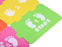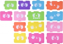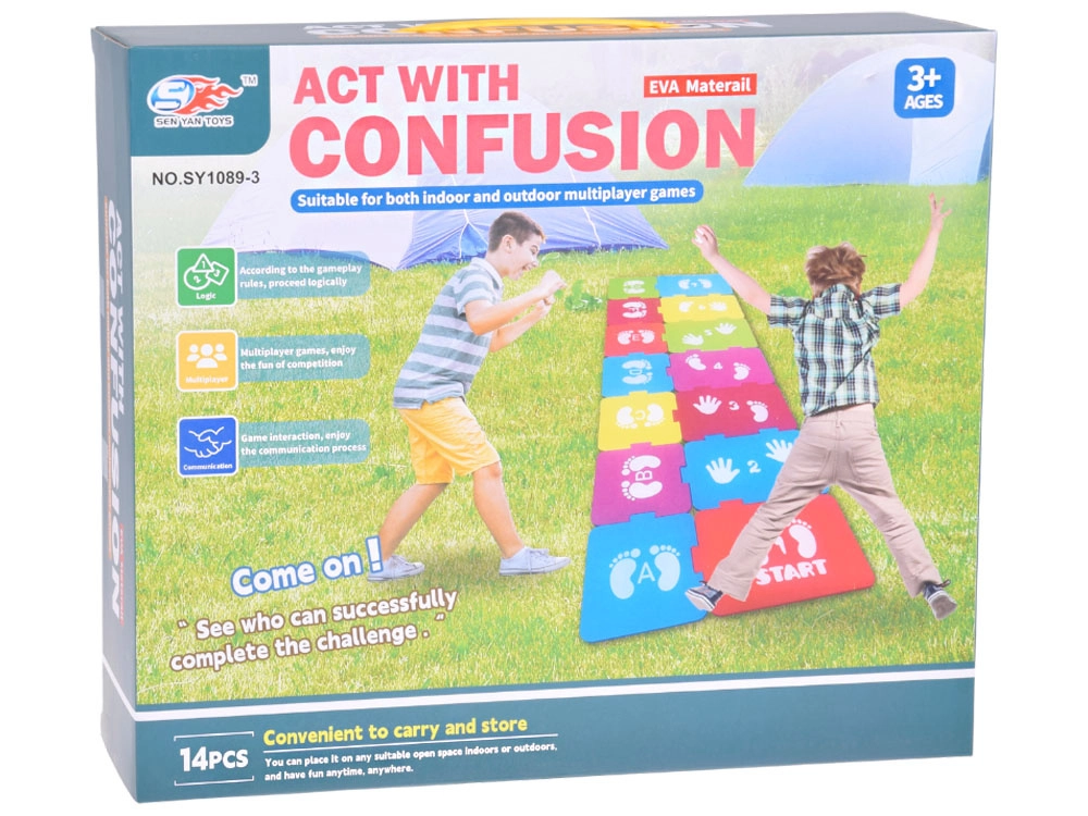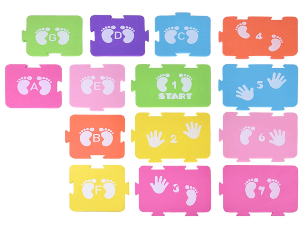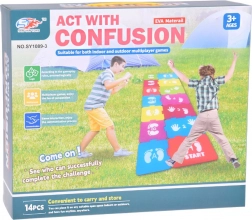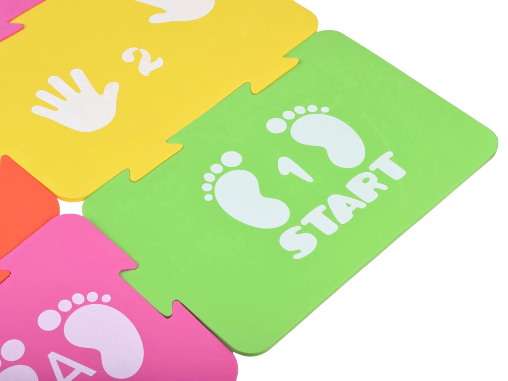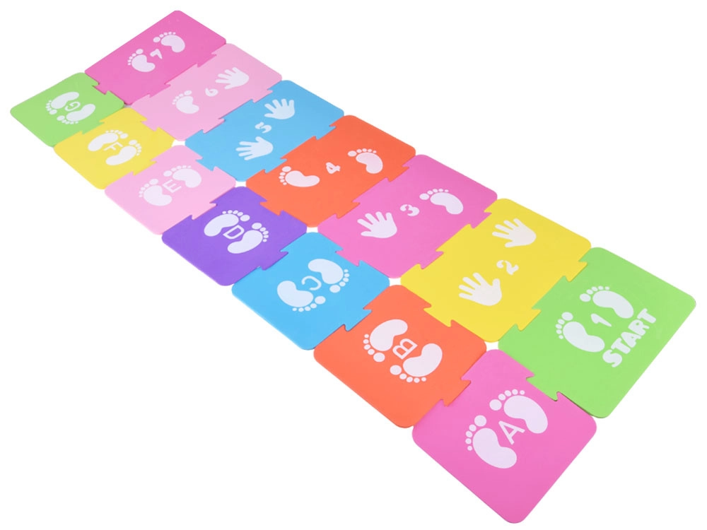 Dieses Actionspiel eignet sich hervorragend für größere Gruppen und den Familiennachmittag. Ziel ist es, die Aufgaben nach dem Bewegungsmuster zu erfüllen – Hände und Füße auf die vorgegebenen Felder setzen und ohne Berührung anderer Flächen vorankommen. Dank der weichen, rutschfesten Oberfläche sind Kinder sicher und lernen gleichzeitig Farben, Buchstaben und Zahlen.