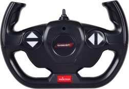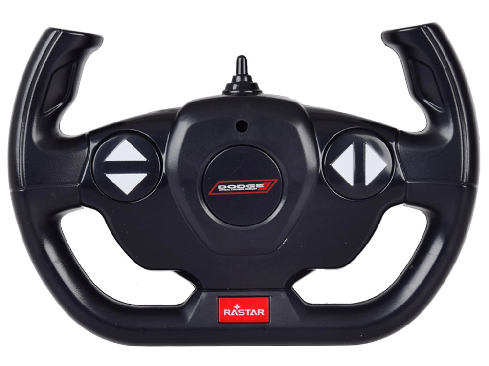 Das RC-Fahrzeug wird mit dem beiliegenden Lenkrad-Sender gesteuert und beherrscht Vorwärts-/Rückwärtsfahrt und Links-/Rechtslenkung. Die robuste Ausführung in Mattschwarz mit silbernen Rädern und dem typischen „Blower“ macht das Modell zum Hingucker im Regal und zum actionreichen Begleiter für Fahrspaß zu Hause.