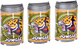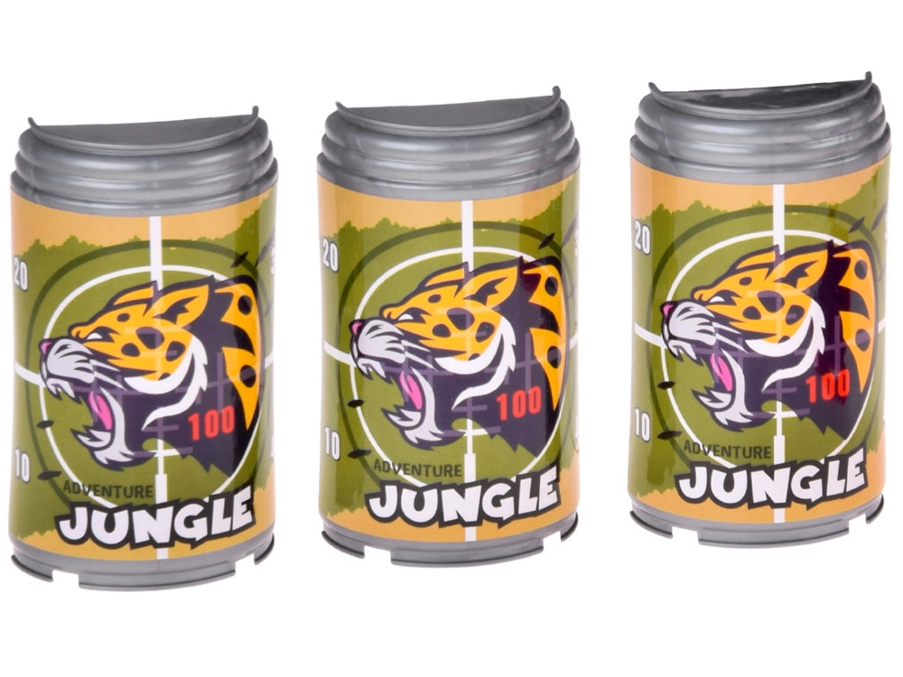 Drei leichte „Dosen“ mit ADVENTURE JUNGLE-Aufdruck und Punktzonen machen das Zieltraining zu einem unterhaltsamen Spiel für einen oder mehrere Spieler.