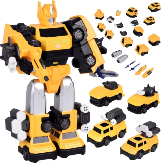 Dieser futuristische magnetische Transformer besticht durch eine markante gelb-schwarze Farbgebung und eine robuste Verarbeitung. Dank der starken magnetischen Steckverbindungen bauen Kinder den Roboter schnell um und erschaffen eigene heldenhafte Szenen. LED-Beleuchtung im unteren Bereich verleiht der Action eine realistische Atmosphäre.