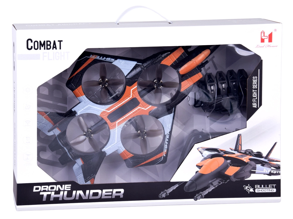 Die Fernsteuerung verfügt über eine Schussfunktion. Im Lieferumfang sind 4 leichte Kunststoffpfeile enthalten, die während des Flugs für Luftduelle abgefeuert werden können.
