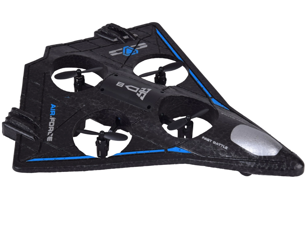 Integrierte Kanäle um die Propeller erhöhen die Sicherheit und Widerstandsfähigkeit bei kleinen Stürzen. Der Schaum-Kunststoff-Korpus ist ideal für Indoor- und Outdoor-Flüge bei Windstille.