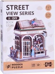 Dieses detailreiche 3D-Holzpuzzle ermöglicht den Bau einer realistischen mini Buchhandlung voller Bücher und kleiner Deko-Elemente. Die LED-Beleuchtung sorgt nach Einbruch der Dunkelheit für eine gemütliche Atmosphäre und hebt die durch die Fenster sichtbaren, durchdachten Details hervor. Das Modell eignet sich hervorragend als originelle Innendekoration und als Geschenk für Modellbau- und DIY-Fans.