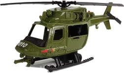 Der große grüne Hubschrauber mit drehenden Rotoren und stabilen Kufen erweitert die Action um Aufklärung und Einsätze aus der Höhe. Öffnende Türen und Cockpitdetails erhöhen die Realitätsnähe.