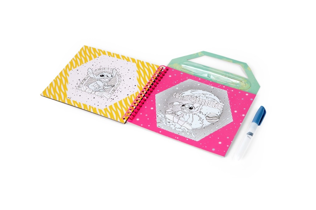 Einfach den Stift mit Wasser füllen und über die Seite fahren – verborgene Farbtöne erscheinen sofort. Nach dem Trocknen kann das Malbuch erneut verwendet werden.