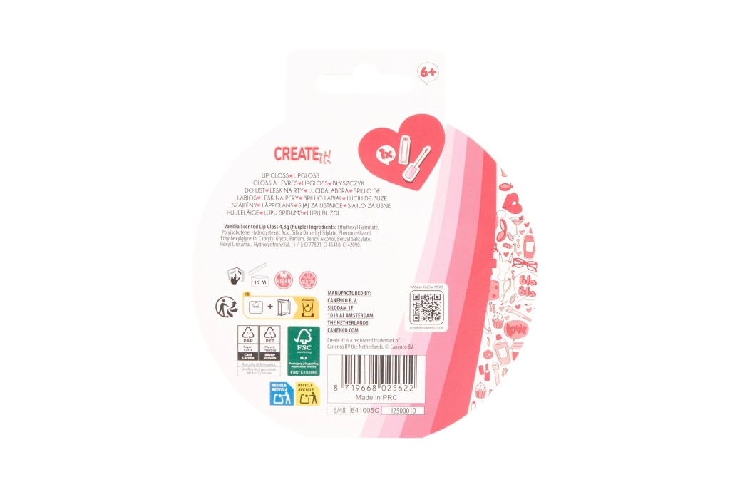 Der CREATE it! Lipgloss vereint Pflege und verspielte Ästhetik in einem süßen Mini-Compact. Jeder Compact hat einen transparenten Deckel mit schwebenden Glitzerpartikeln, die sofort ins Auge fallen, während die dezent duftende Vanille-Formel den Lippen sanften Glanz und angenehme Feuchtigkeit schenkt.
