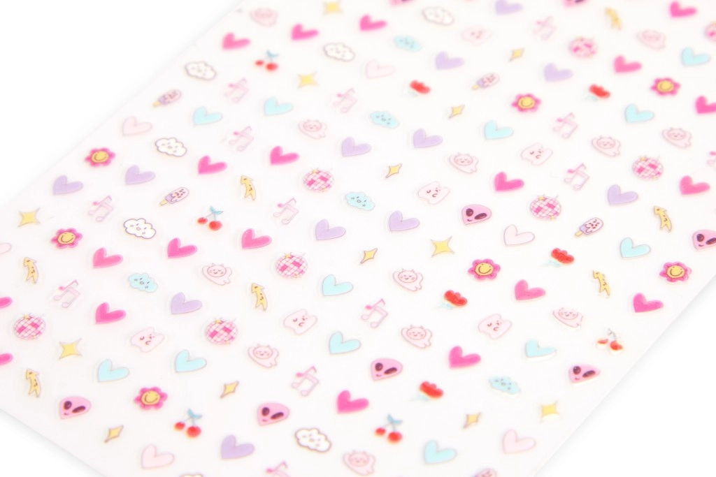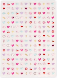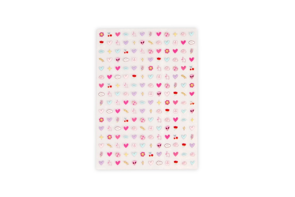 Die Sticker sind für Kinder ab 6 Jahren gedacht und haften hervorragend auf natürlichen sowie aufgeklebten Nägeln. Das glänzende Finish und die Mini-Formen wie Herzchen, Sterne, Blümchen oder Kirschen setzen jedem Look einen zarten, farbigen Akzent.