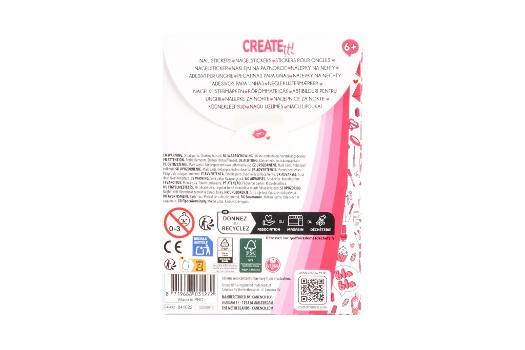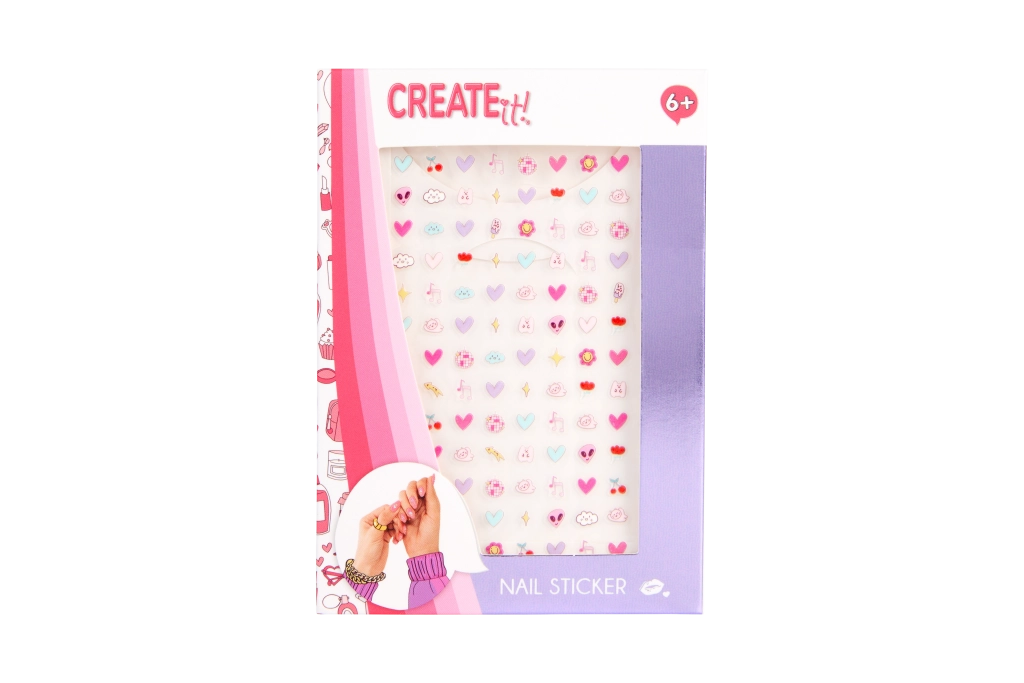 Die Kinder-Nagelsticker CREATE IT! sorgen im Handumdrehen für verspielte Deko. Einfach abziehen, aufkleben – fertig, ganz ohne Kleckern und ohne Trocknen. Dank der bunten Motivpalette können kleine Fashionfans Stile leicht kombinieren und ihren eigenen Nail Art kreieren.