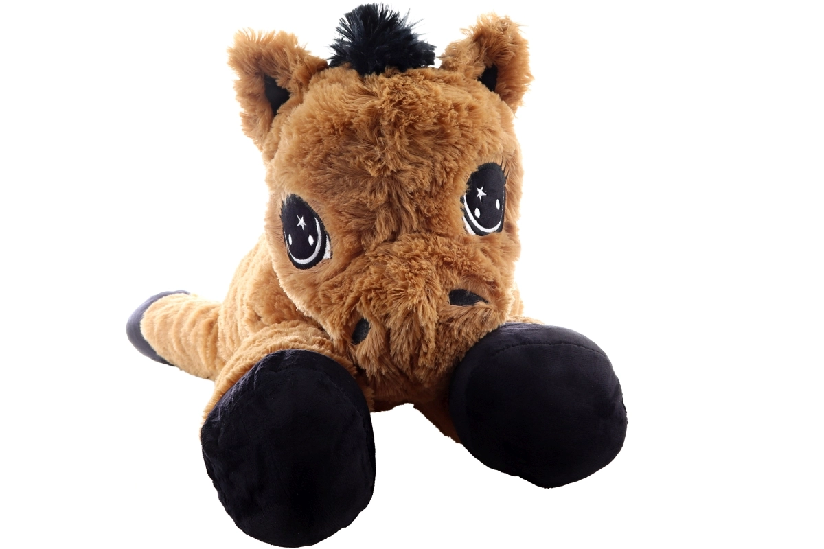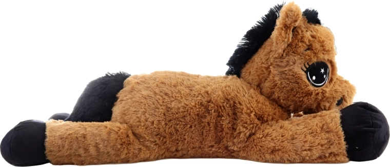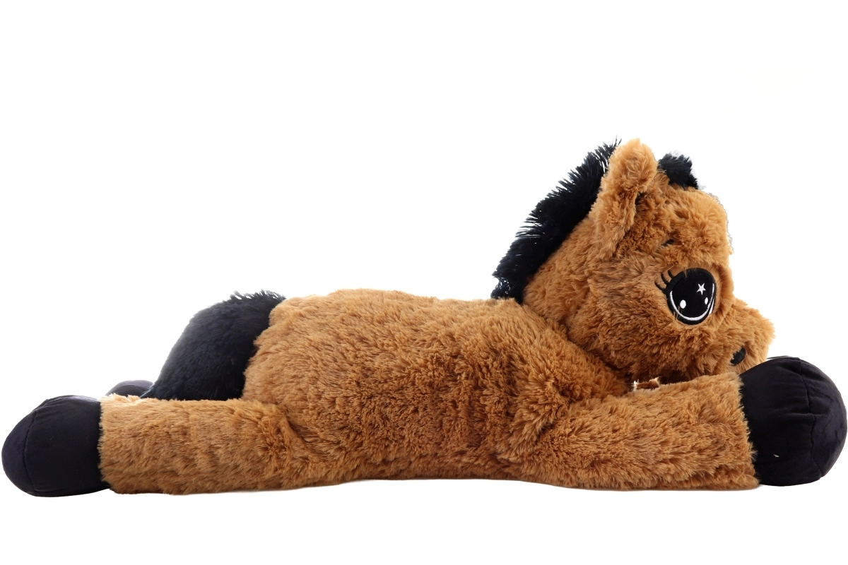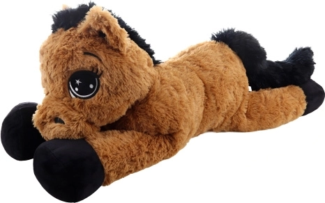 Dieses braune liegende Plüschpferd begeistert auf den ersten Griff. Es hat große gestickte Augen, eine weiche Mähne und einen weichen Schweif und dient sowohl als kuscheliger Freund als auch als bequeme Stütze beim Lesen oder beim Anschauen von Märchen. Die Maße 80 × 32 × 25 cm garantieren ausreichend Platz zum Umarmen und Ausruhen.