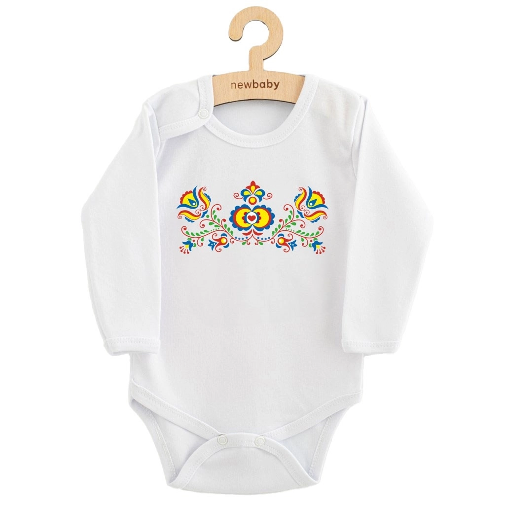 Stilvolles Baby-Body mit langen Ärmeln und folkloristischem Motiv der Marke NEW BABYtraditionelles Muster mit modernem Design verbindet. Aus 100 % weicher Baumwolle, sanft zur empfindlichen Haut, mit praktischen Druckknöpfen an der Schulter und im Schritt für leichtes An- und Ausziehen sowie Wickeln. Zertifizierte Farben und Material mit OEKO‑TEX STANDARD 100 garantieren Sicherheit auch für Neugeborene.
