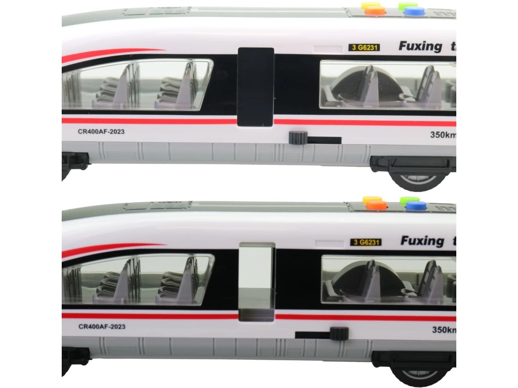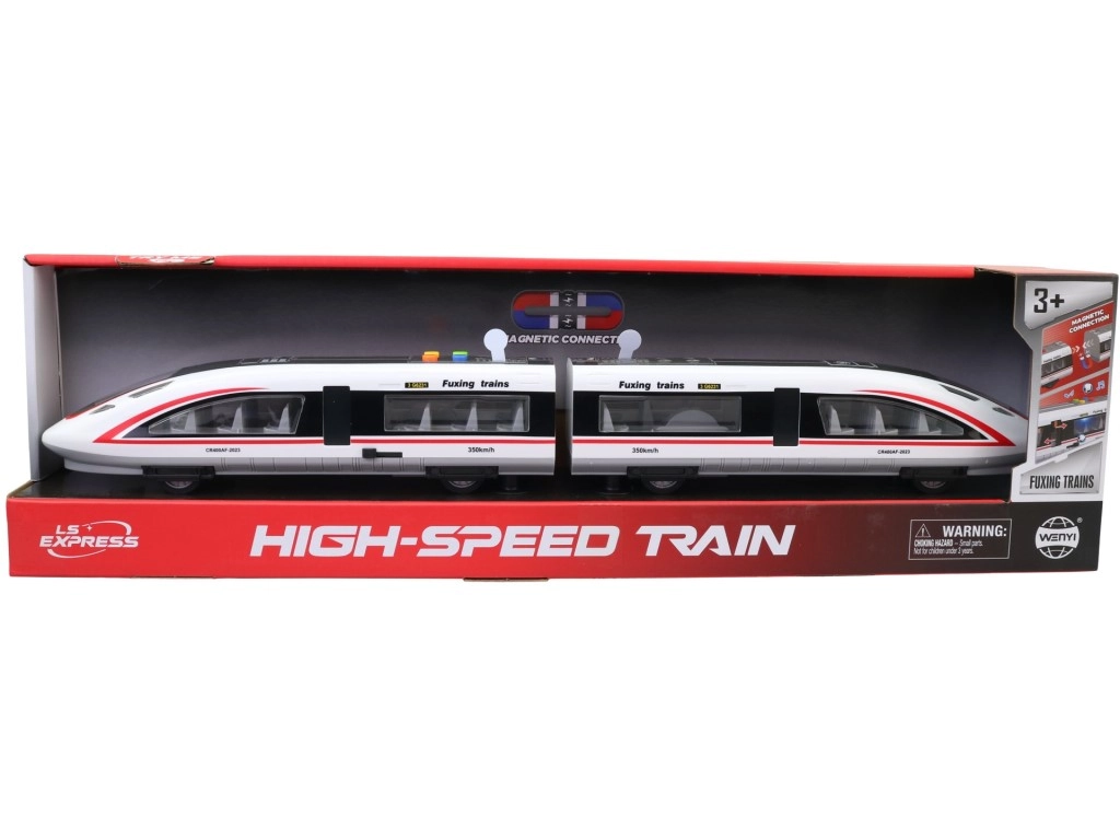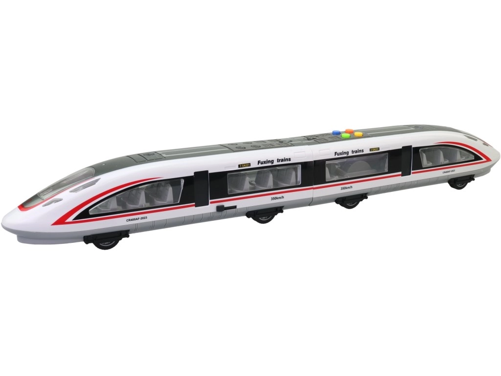 Dieses Kindermodell eines modernen Hochgeschwindigkeitszugs bietet realistische Details – transparente Fenster mit Sitzen, Türen, aerodynamische Linien und den Geschwindigkeitsaufdruck 350 km/h. Auf dem Dach befinden sich farbige Tasten zur Aktivierung von Licht- und Soundeffekten, die die Fantasie anregen und jede Fahrt zu einem unvergesslichen Erlebnis machen.