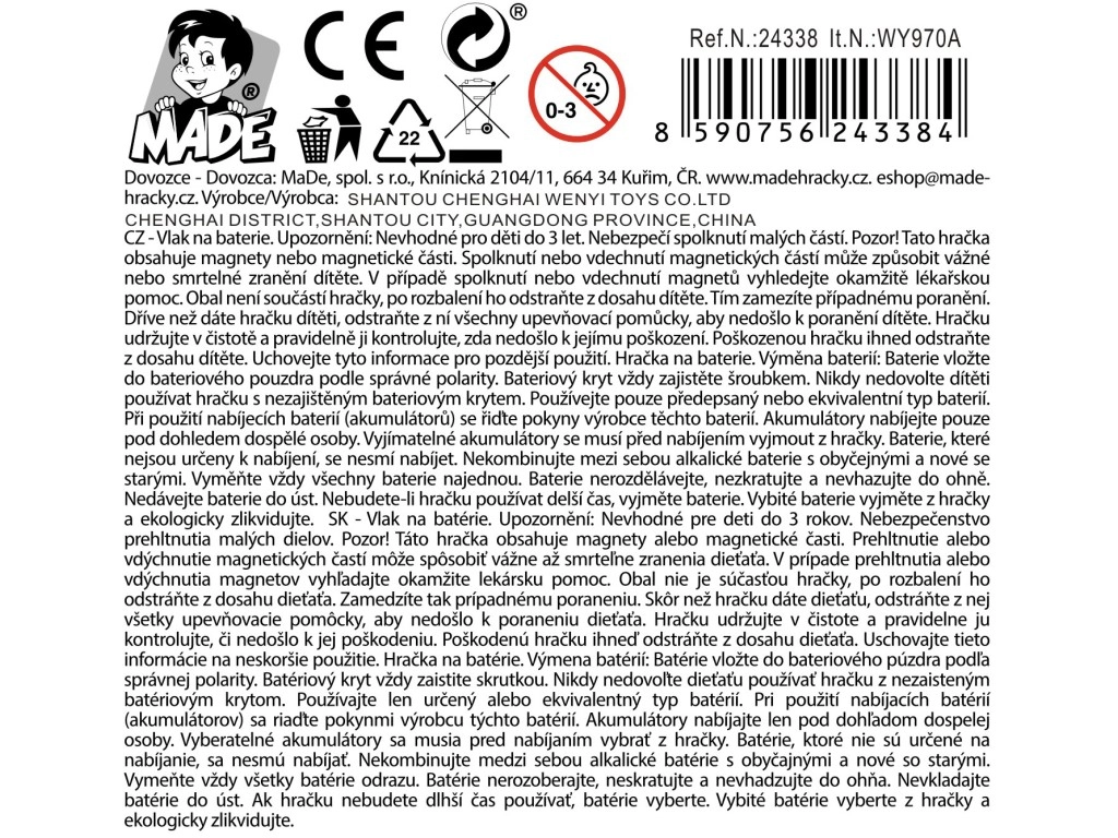 Zwei gelenkig verbundene Wagen mit freilaufenden Rädern ermöglichen eine sanfte Fahrt auf ebenen Flächen und Kinderbahnen. Dank robustem Kunststoff und der Stromversorgung mit 3× AG13 ist das Spielzeug für langanhaltenden Spielspaß bereit. Ideal für kleine Zugfans, die die Welt der Eisenbahn entdecken und ihre Vorstellungskraft entwickeln möchten.