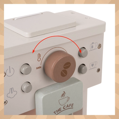 Schenken Sie Kindern die Freude an ihrem eigenen Café. Die Holz-Kaffeemaschine KRUZZEL ist ein durchdachtes Lernspielzeug, das Fantasie, Hand-Auge-Koordination und Selbstständigkeit fördert. Dank der dezenten Farbgebung passt sie sowohl in moderne als auch klassische Kinderzimmer.