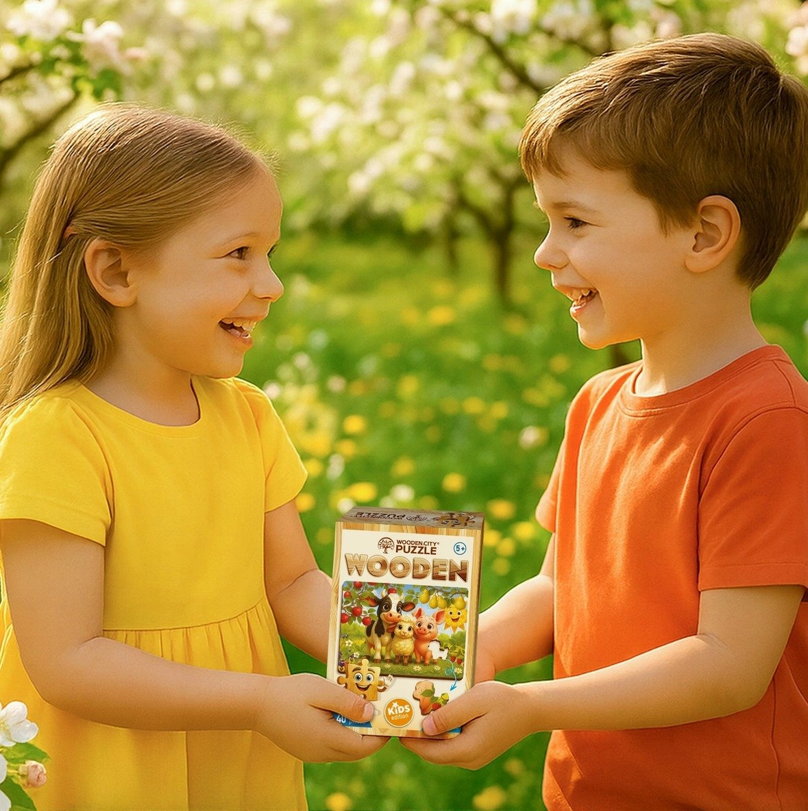 Das Holzpuzzle von WOODEN CITY verbindet Spiel und Lernen in einem. Dank präziser Laserverarbeitung haben die Teile perfekt glatte, splitterfreie Kanten, passen hervorragend ineinander und ergeben eine farbenfrohe Szene mit Bauernhoftieren. Eine separate Vorlage ist für bequemes Puzzeln enthalten.