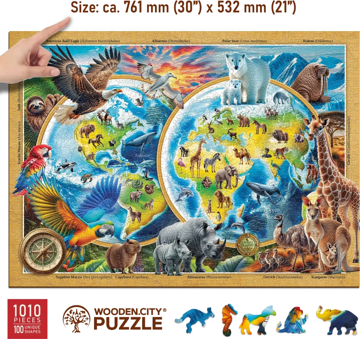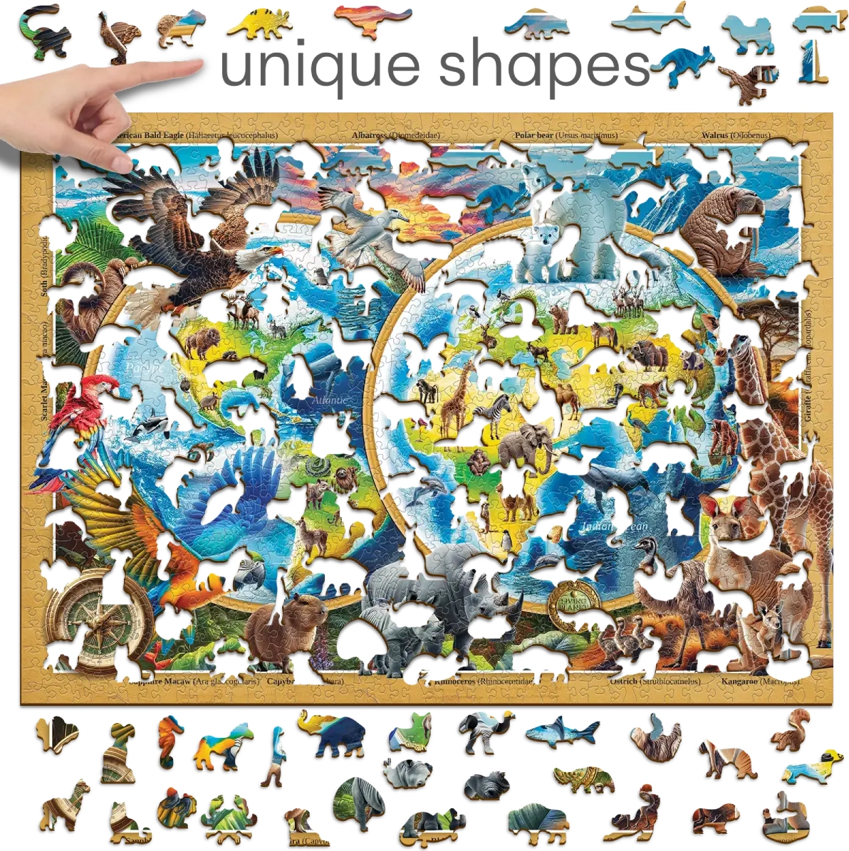 Das Holzpuzzle WOODEN CITY Planet der Wildtiere besticht durch seine detailreiche Grafik und hochwertige Ausführung aus Holz, die angenehm anzufassen und robust ist. Dank präzisem Laserschnitt fügen sich die Teile perfekt ineinander, und das Puzzeln verläuft flüssig und ohne Splitter. Zum Lieferumfang gehört auch eine Vorlage, die die Orientierung selbst für weniger geübte Puzzler erleichtert.