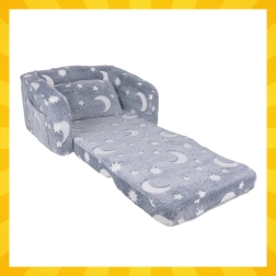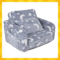 Weicher Komfort und Spaß in einem – der ausziehbare Kinderstuhl von Kruzzel verwandelt sich im Handumdrehen in eine Liege zum Lesen, Ausruhen und für Märchen. Federleicht, sicher und leicht zu tragen, mit praktischer Seitentasche und weichem Plüschbezug. Fluoreszierende Monde und Sterne leuchten sanft im Dunkeln und schaffen eine beruhigende Atmosphäre für ein entspanntes Einschlafen.