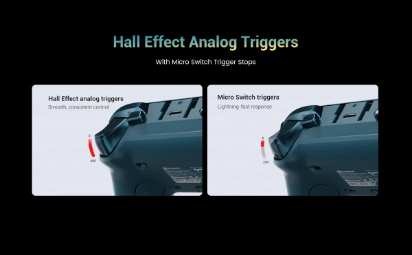 Mag-Res TMR-Sticks sorgen für gleichmäßige, präzise Bewegungen und lange Lebensdauer. Hall-Effect-Trigger mit mikroschaltenden Anschlägen und Hair-Trigger-Modus bieten maximale Kontrolle.