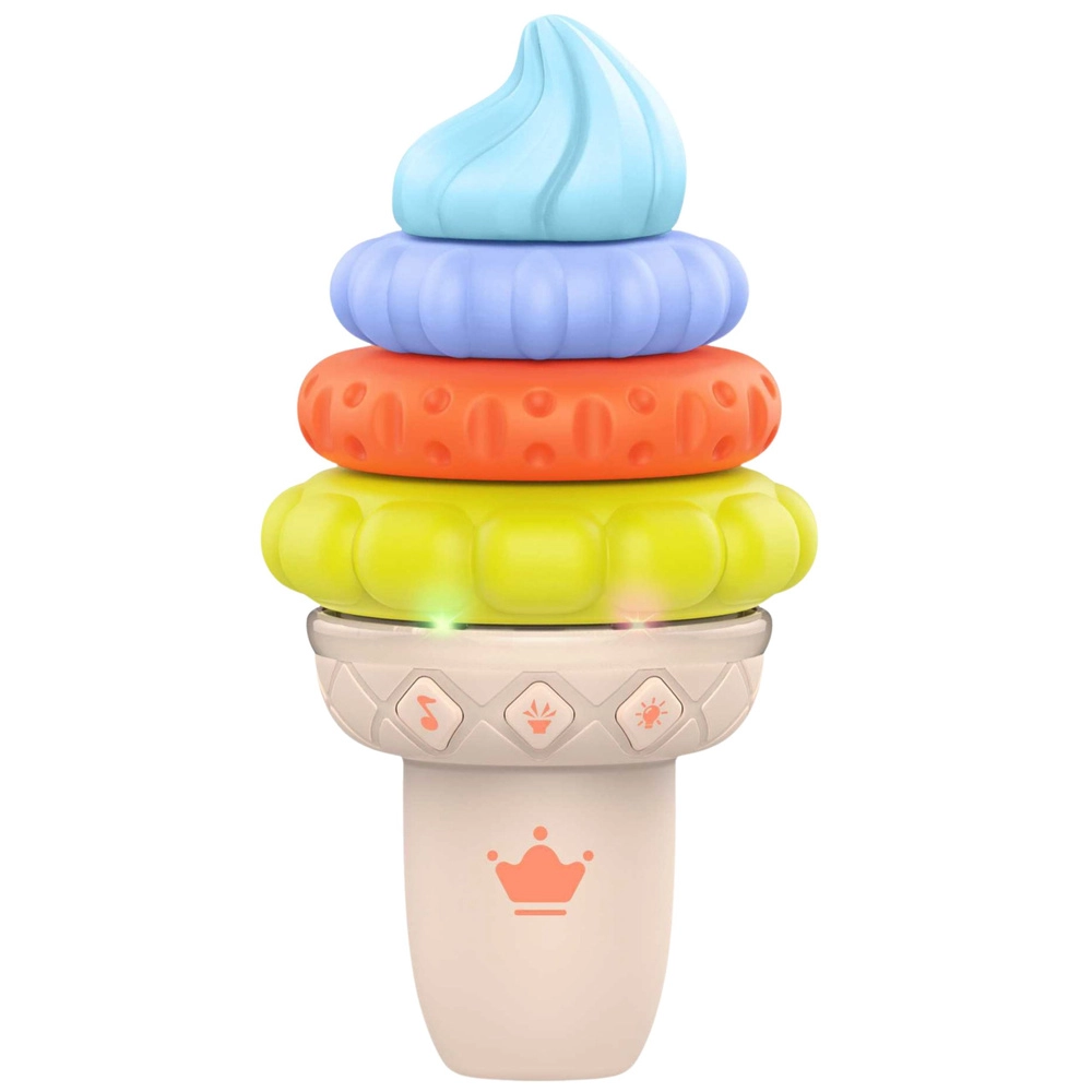 Dieses musikalische Lern-Eis ist eine großartige Wahl für die ersten Entdeckungen der Welt durch Spiel. Bunte, weiche und elastische Teile mit verschiedenen Texturen laden zum Greifen, Drücken und beliebigen Stapeln ein und fördern so das logische Denken und die Entwicklung der Feinmotorik. Eingebaute LEDs und angenehme Melodien fesseln die Aufmerksamkeit des Kindes und unterstützen die sensorische Stimulation.