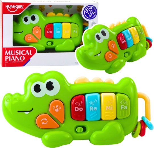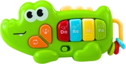 Lernen Sie das fröhliche Krokodil kennen, das die Liebe zur Musik von klein auf weckt. Kinder können die bunten Tasten mit den Grundtönen Do, Re, Mi, Fa drücken, verschiedene Melodien und Klänge entdecken und so Gehör und Rhythmusgefühl entwickeln. Die praktische Größe sorgt dafür, dass das Spielzeug leicht in Kinderwagen, Auto oder auf den Spaziergang mitgenommen werden kann.