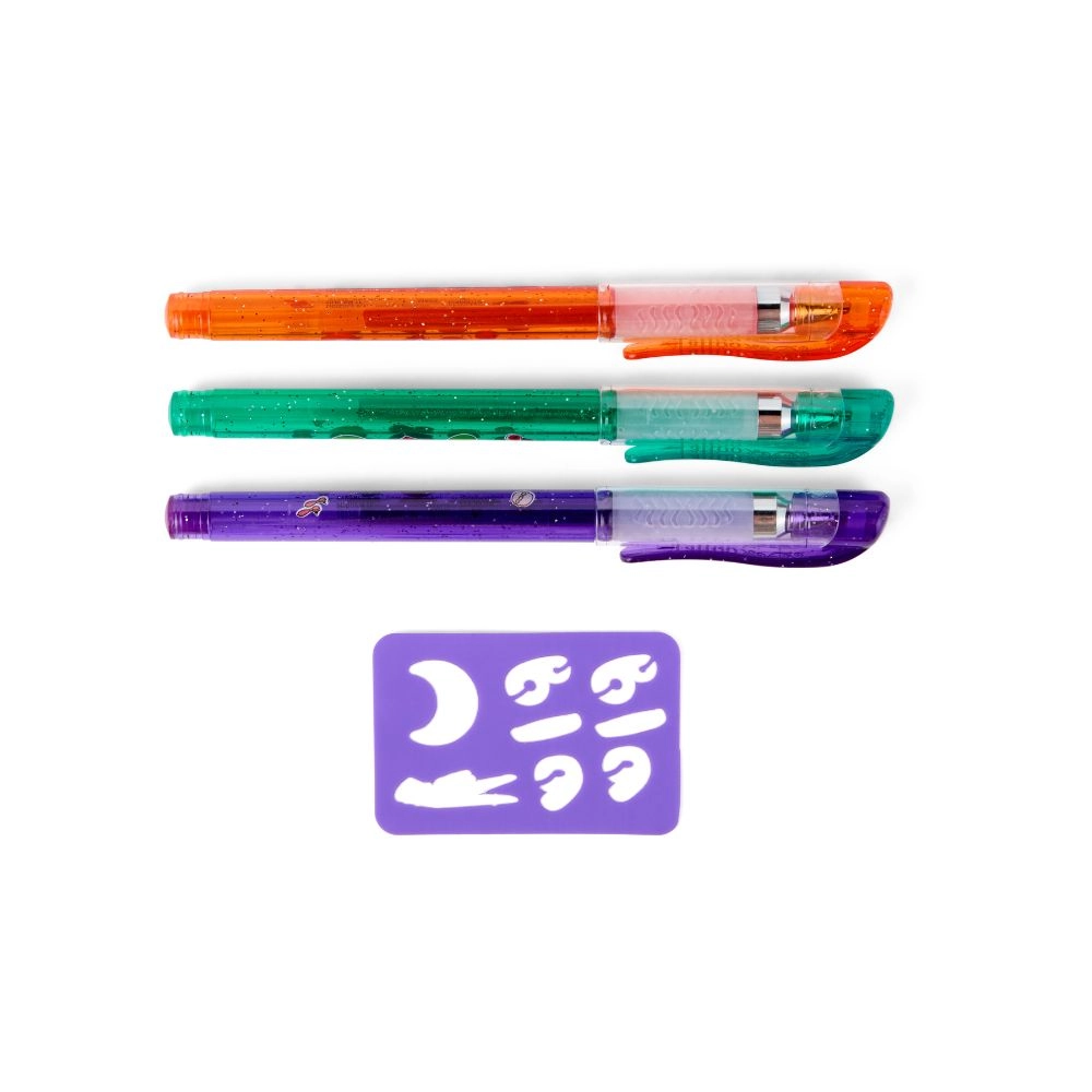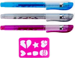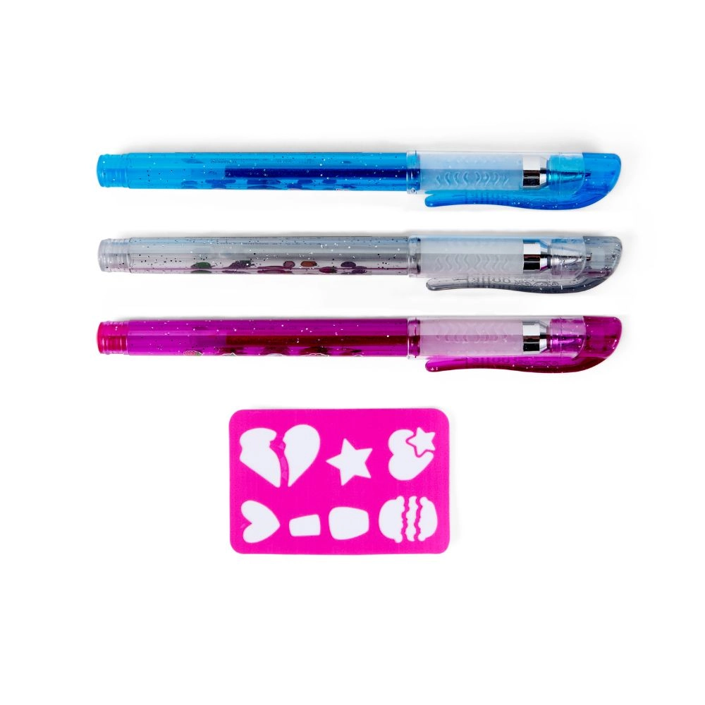 Drei farbige Gelstifte mit Glitzer verleihen deinen Motiven einen WOW-Effekt. Ideal zum Zeichnen auf der Haut und für feine Linien mit der Schablone.