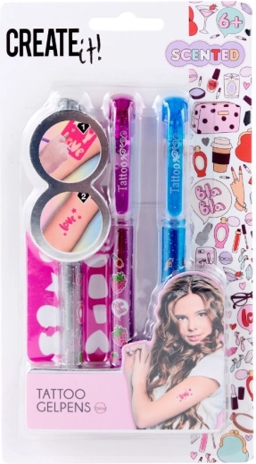 Werde zur kleinen Tätowiererin und kreiere deinen eigenen Stil mit den bunten und duftenden Tattoo-Stiften von CREATE IT!. Dank der glitzernden Gel-Tinte werden deine Motive auffällig und verspielt. Nutze die beiliegenden Schablonen für präzise Formen oder entwirf ein originelles Motiv ganz nach deinem Geschmack. Die temporären Tattoos lassen sich einfach mit Wasser abwaschen – so kannst du jeden Tag neu experimentieren.