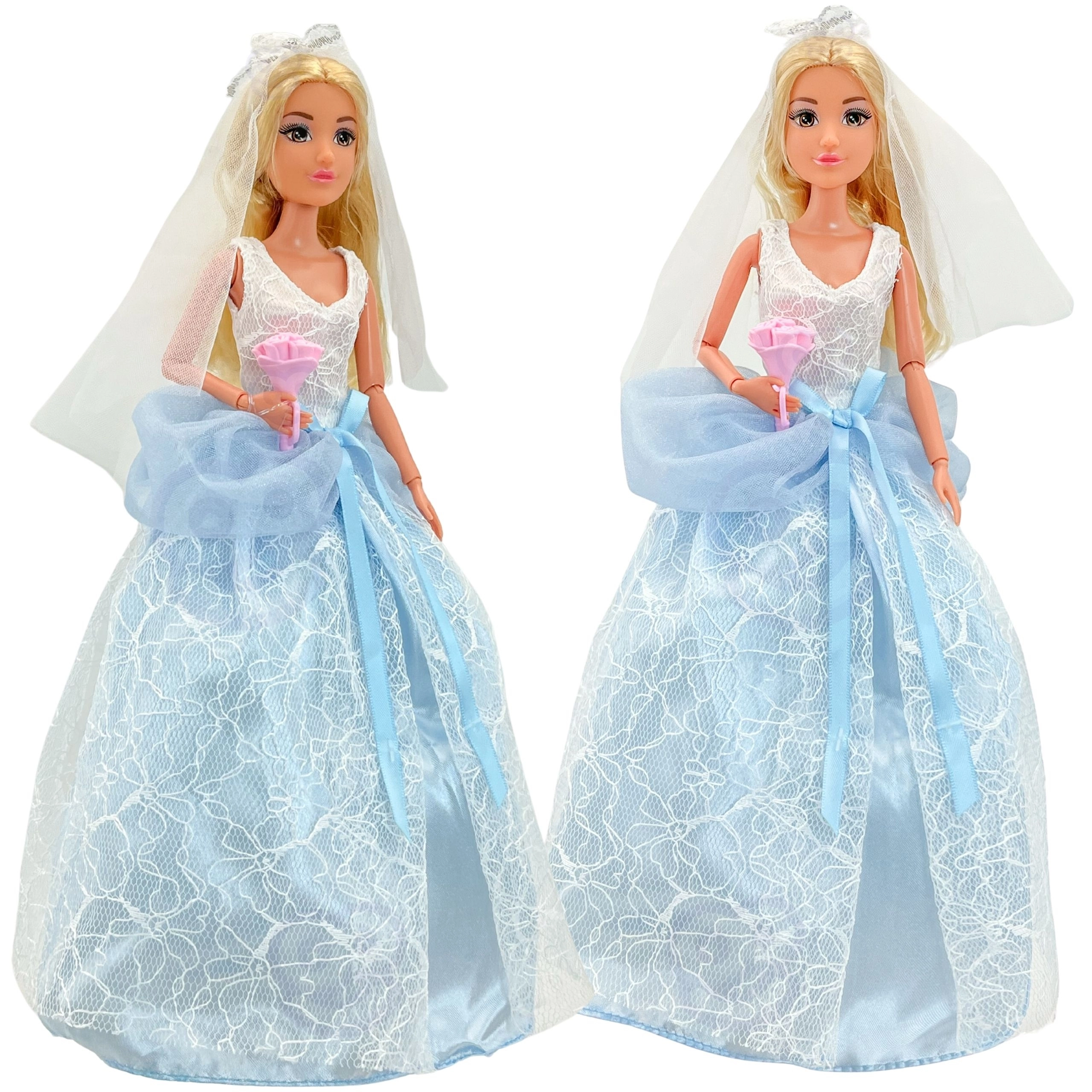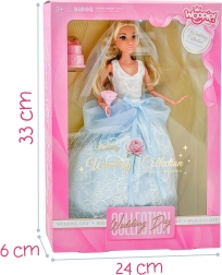 Entdecken Sie die Welt der Fantasie mit der Brautpuppe Lily, die für ihren großen Tag bereit ist. Mit ihrem detailreich gestalteten Brautkleid mit blauen Akzenten, dem zarten Schleier und den blonden Haaren begeistert sie auf den ersten Blick. Enthalten sind außerdem eine Mini-Hochzeitstorte und ein Herzstrauß – alles für perfekte Hochzeitsszenen.