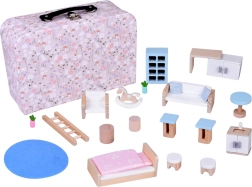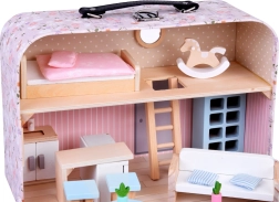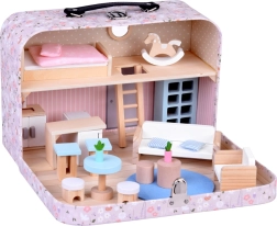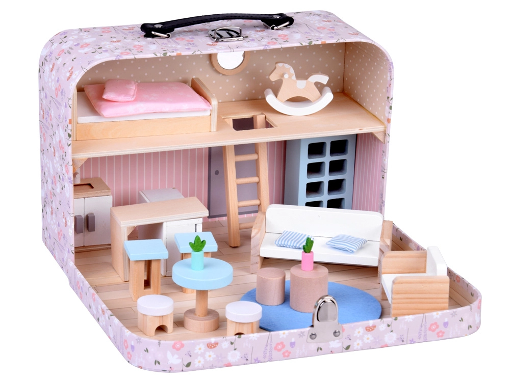 Blumen-Puppenhaus im Koffer mit Holzmöbeln